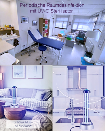 - Der Sterilisierungsvorgang dauert 30min, die Räume müssen in dieser Zeit leer sein.